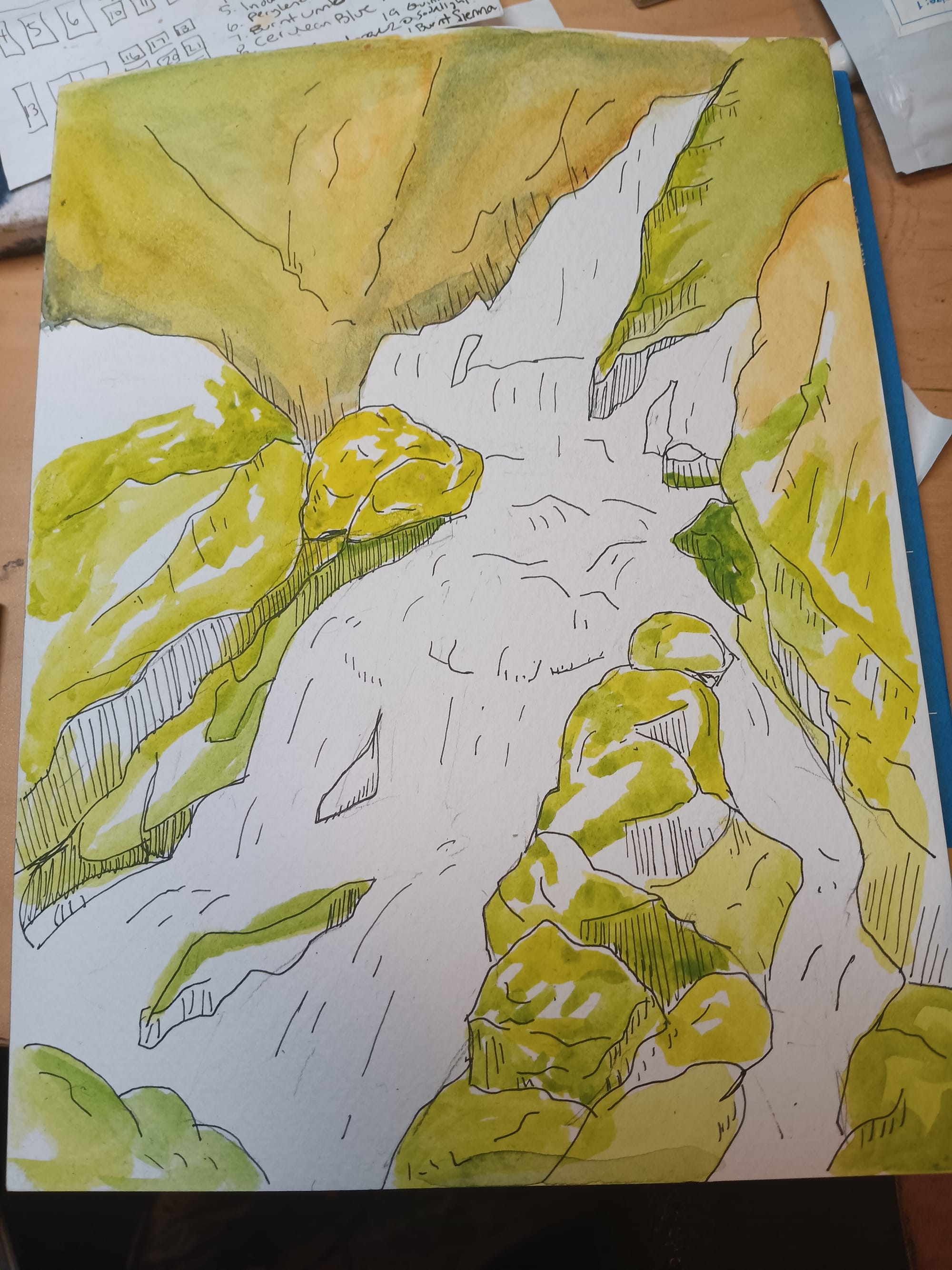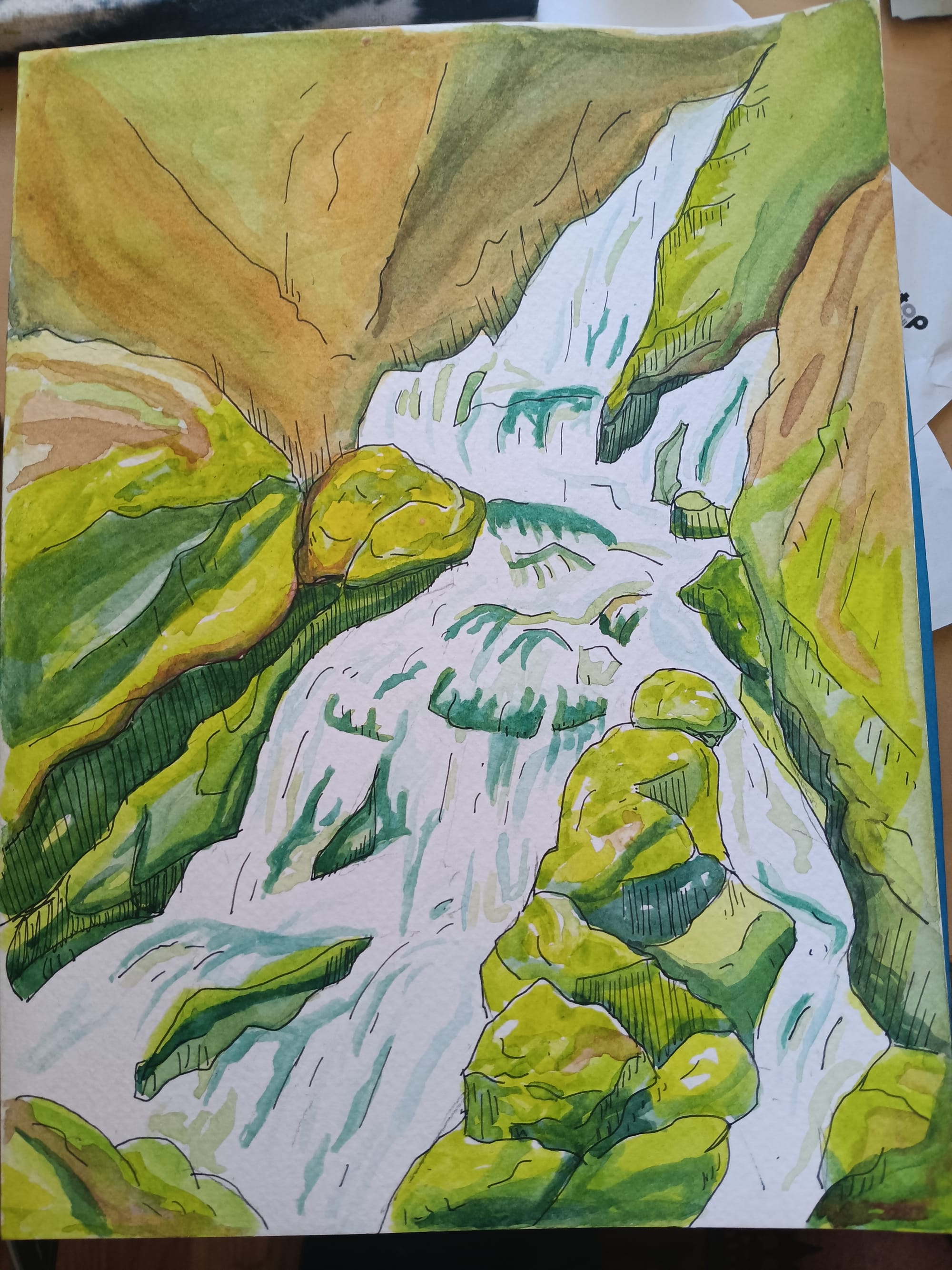 I also finally had time to get back to some watercolor painting. I've been taking lessons since January and am slowly getting the hang of it. This is from one of the classes. A mossy waterfall study with watercolor and ink. It only uses four colors and it's amazing what you can do with a limited palette